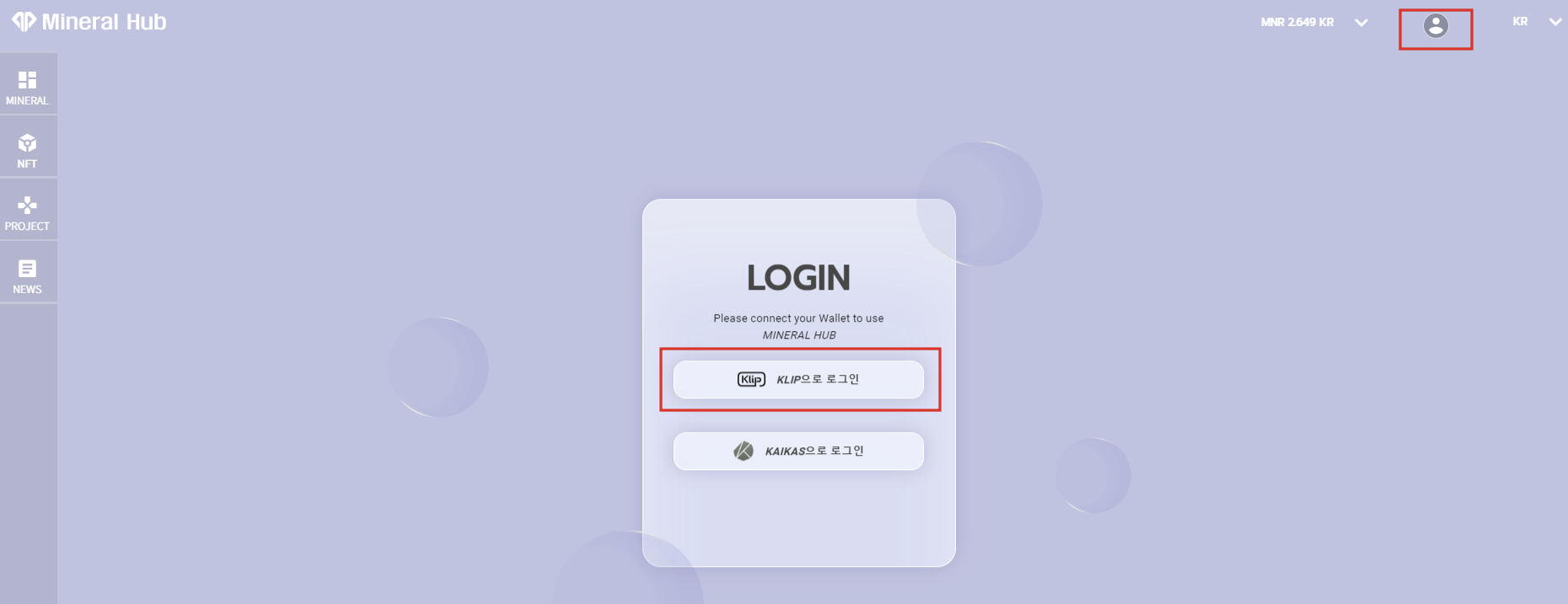 3. 미네랄 HUB 공식 홈페이지 접속 후 로그인 버튼 클릭