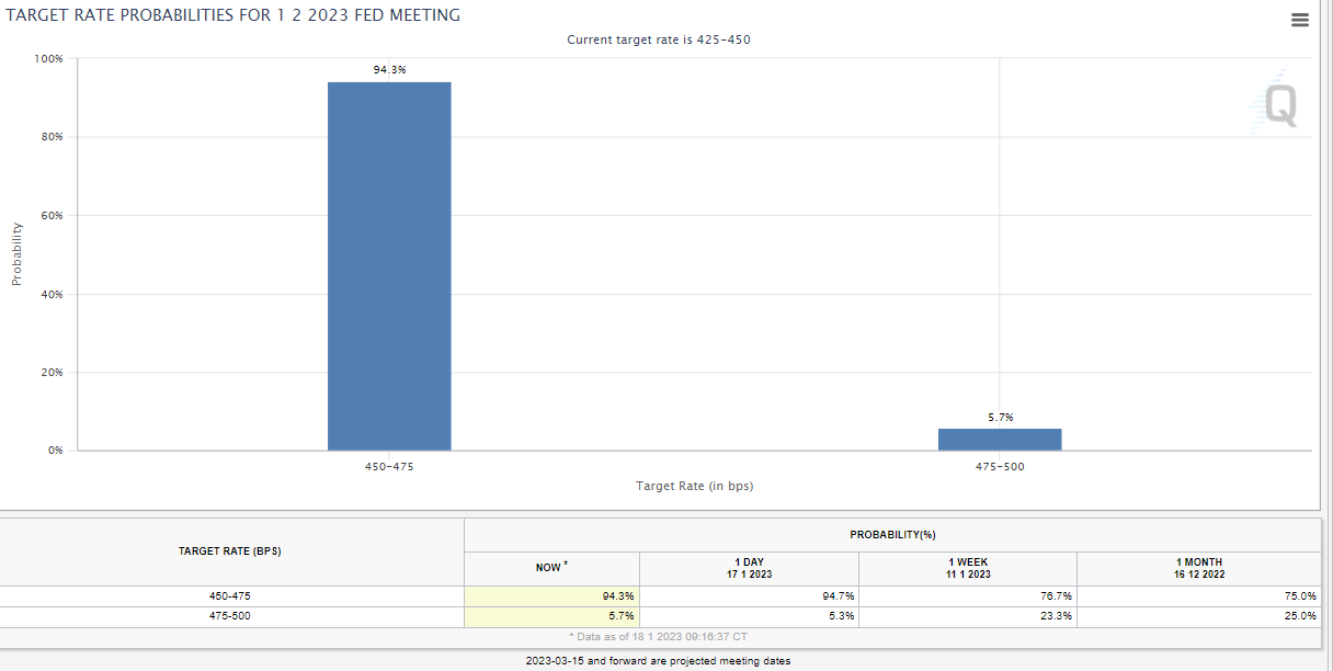 이는 나스닥을 포함하여, 비트코인 등 위험자산에 호재이며 이로써 23년 2월 FOMC 금리 인상 발표는 25Bp에 더욱 힘이 쏠리고 있습니다.