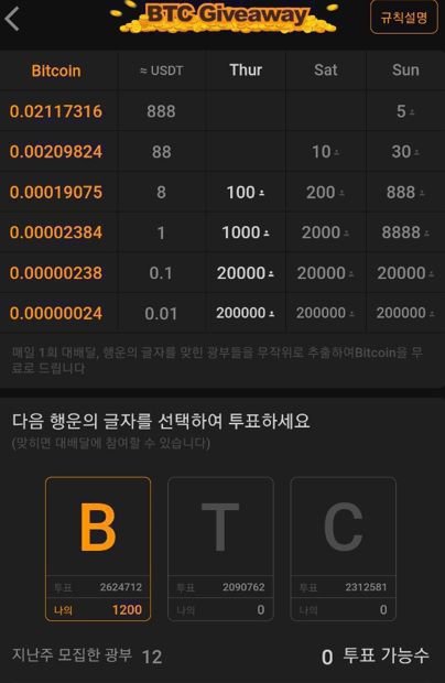 채굴시작(하루에 한번) -> 가속채굴 (10분마다 한번씩. 이것은 선택적이며 기본 채굴에 비해 큰 차이는 없으나 약간의 가속)